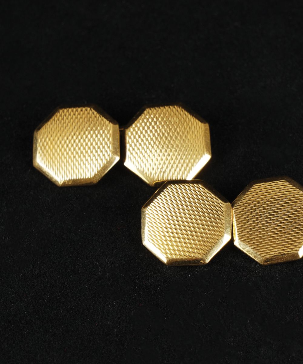 Gemelli di forma ottagonale in oro giallo 18kt. guilloché, peso complessivo gr. 8