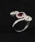 Anello contrariè in oro bianco 18kt. tempestato di brillanti con tre centrali di forma ovale, un rubino Burma non trattato di ct. 0,97 e diamanti G color per ct. 2,41, peso gr. 10, misura 18