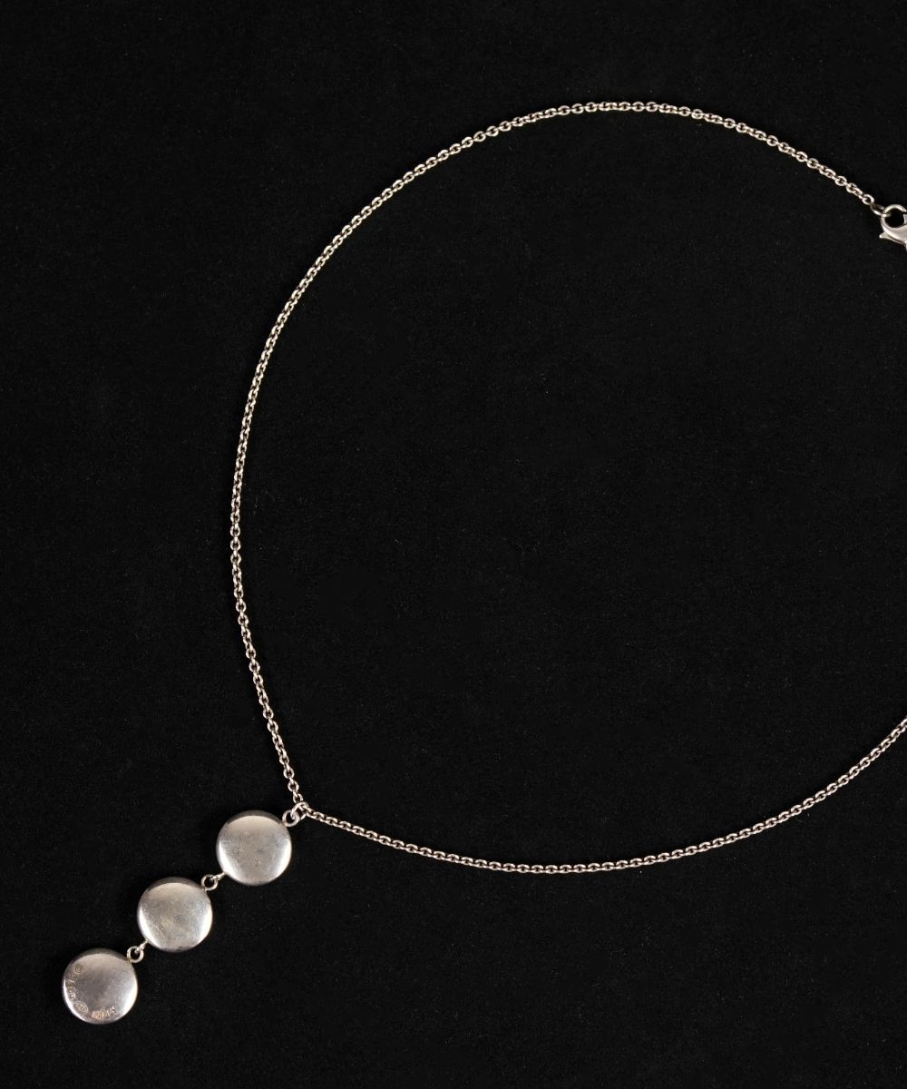 Tiffany collier in argento sterling con ciondolo formato da tre dischi, peso gr. 13, completo di packaging