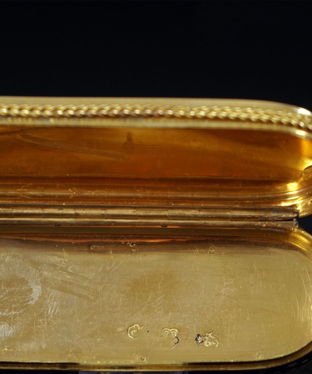 Parigi, XVIII secolo, punzoni di George-Antoine Croze (1777-1790), cm. 2x9x2,5, peso lordo gr. 77 (piccola caduta di smalto)