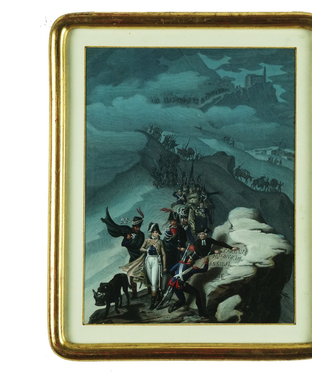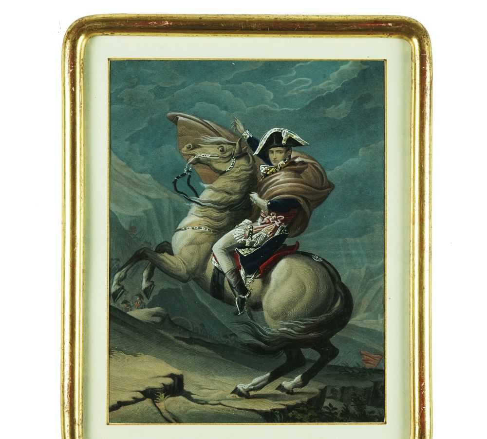 Coppia di stampe acquarellate ciascuna raffigurante un soggetto napoleonico.