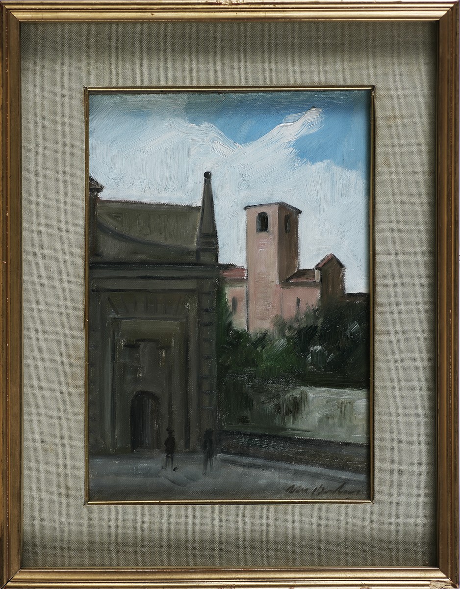 BERLENDIS PINO Porta S. Agostino, città alta. Olio su tela . Cm 23,00 x...
