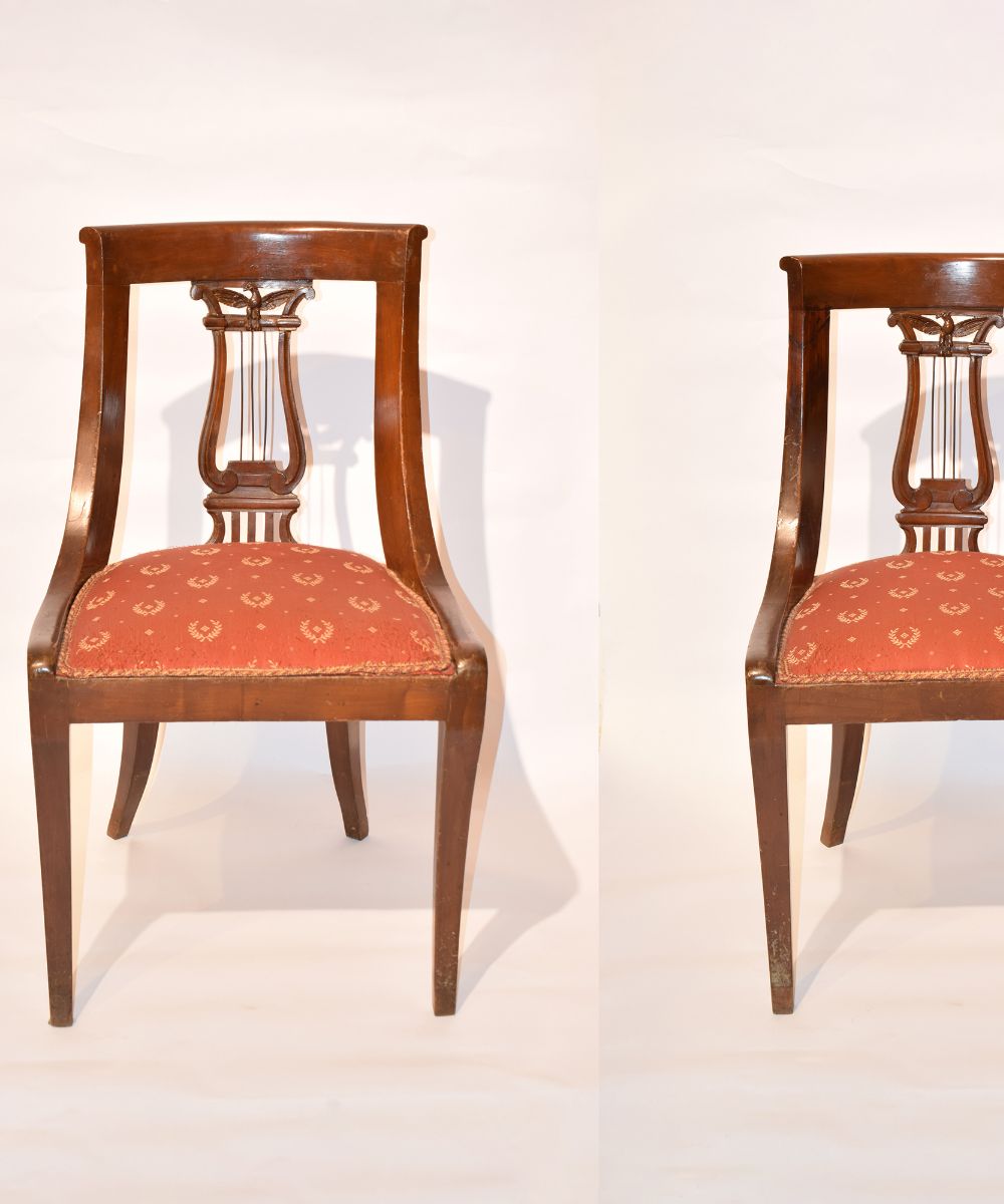 Lotto 159 | Coppia di sedie en gondole di mogano. Schienale a giorno qualificato da un...
