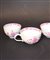Tre tazze in porcellana bianca decorate a motivi kakiemon in viola; una con presa ricurva.