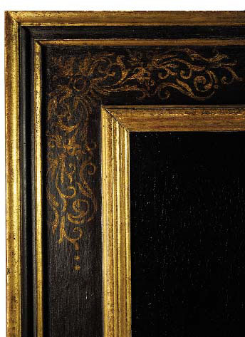 Cornice riadattata. La cornice originale era più stretta di 2 cm. sul lato destro e di 3 cm. sugli altri lati