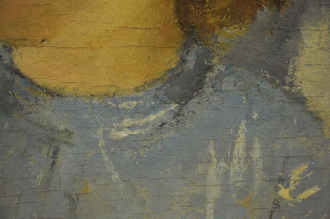 Note: Crepe nella pittura dovute alla fessurazione della tavola. Un capello è incluso nella pittura
