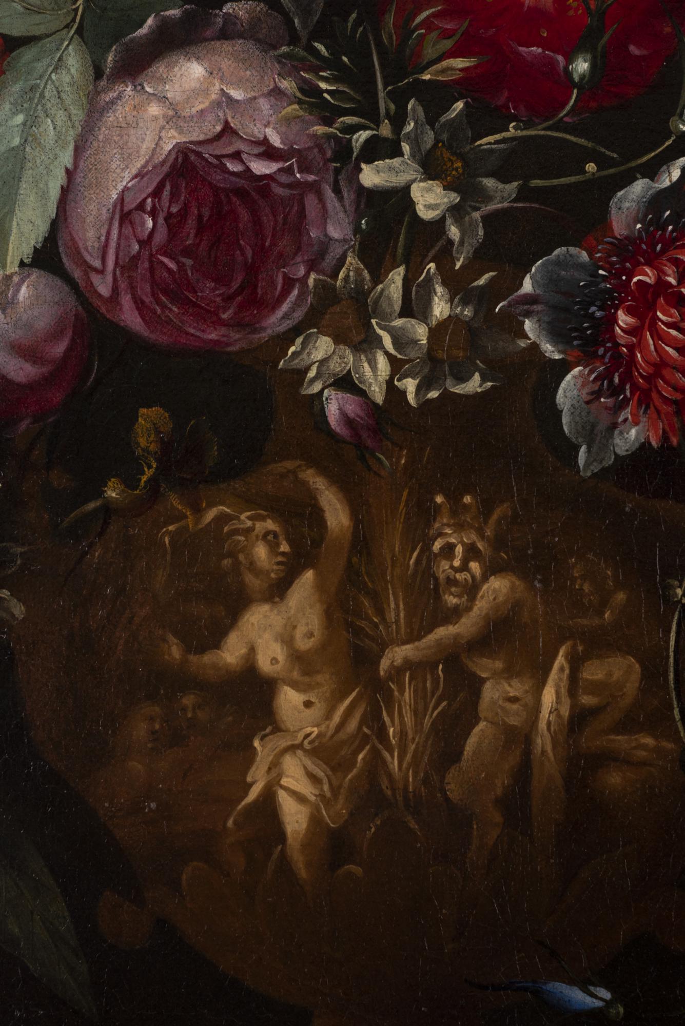 Giovanni Stanchi (1608 - 1675) NATURA MORTA. VASO DI FIORI ISTORIATO CON PAN...