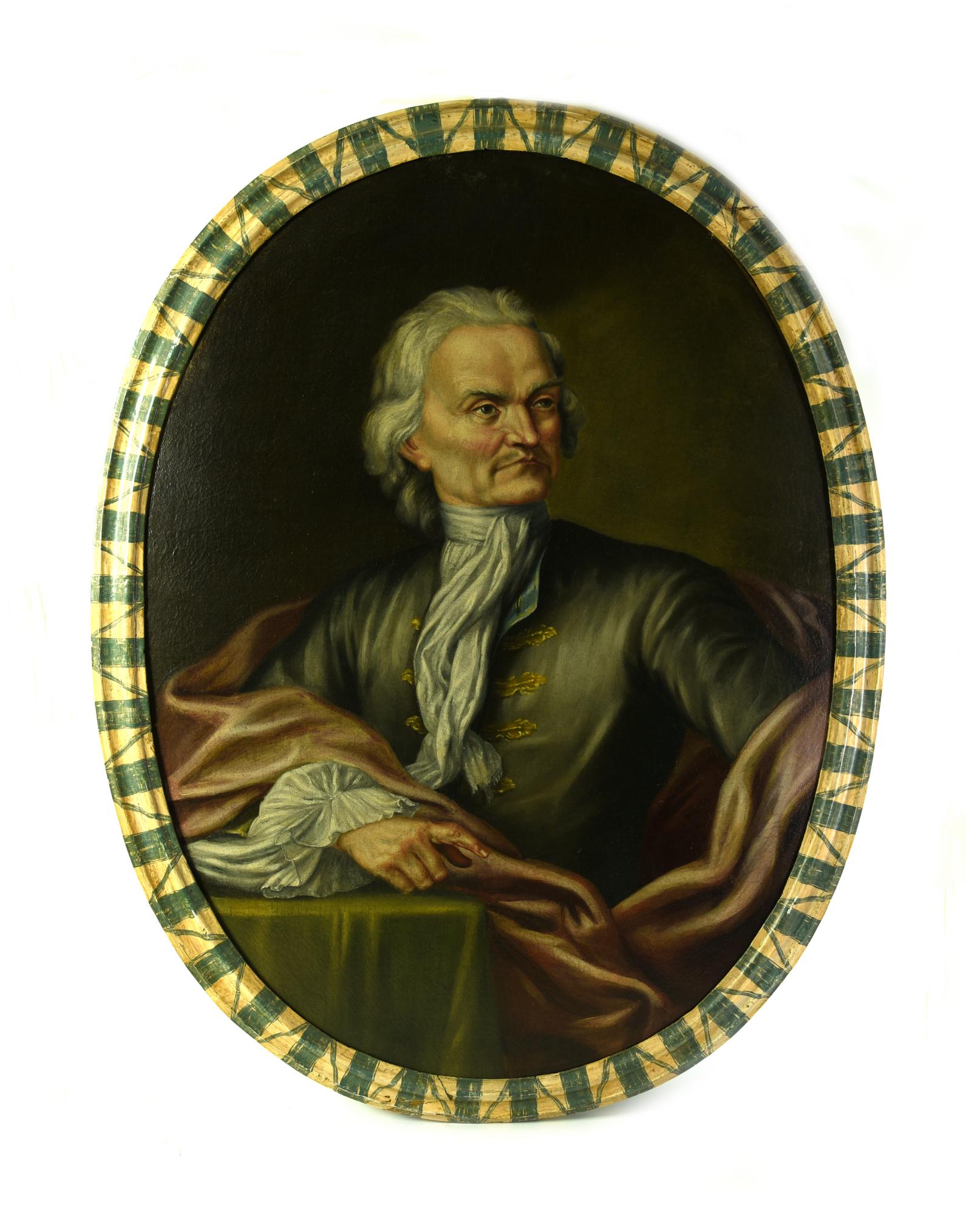 Scuola Genovese del XVIII secolo RITRATTO DI NOBILUOMO olio su tela ovale, cm...