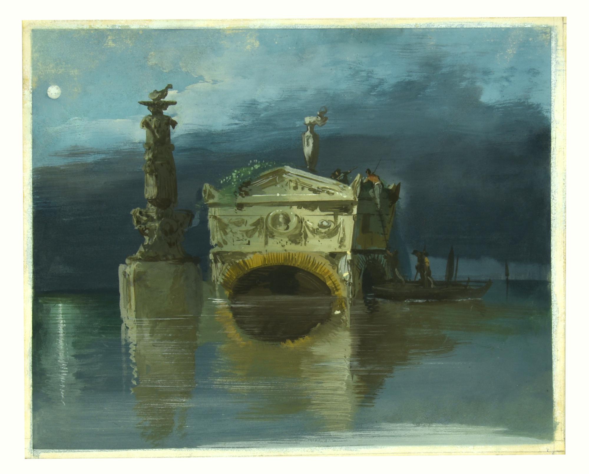 Giuseppe Bernardino Bison (1762 - 1844) VEDUTA AL CHIARO DI LUNA gouache e...