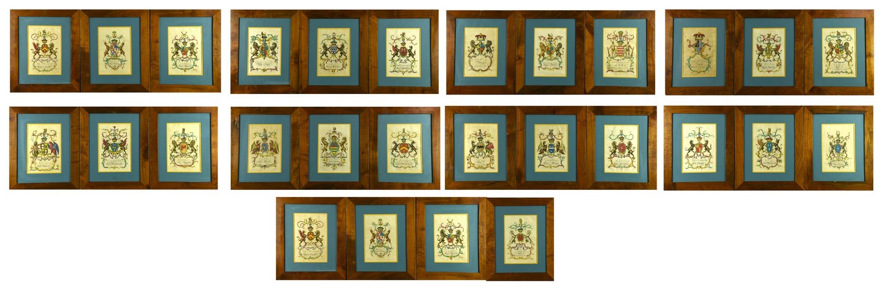 Scuola del XVIII secolo STEMMI ARALDICI DI FAMIGLIE INGLESI stampe a colori...