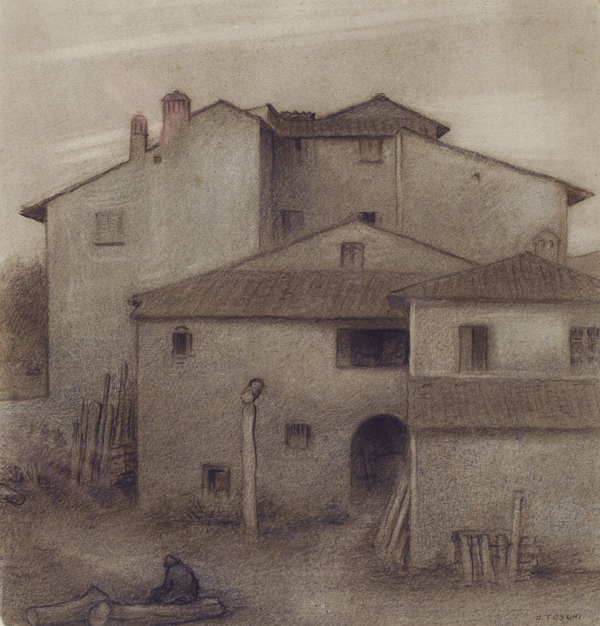 Lotto 391 | Orazio Toschi (Ravenna, 1887 - 1972) VECCHIE CASE A SERA Carboncino su carta,...
