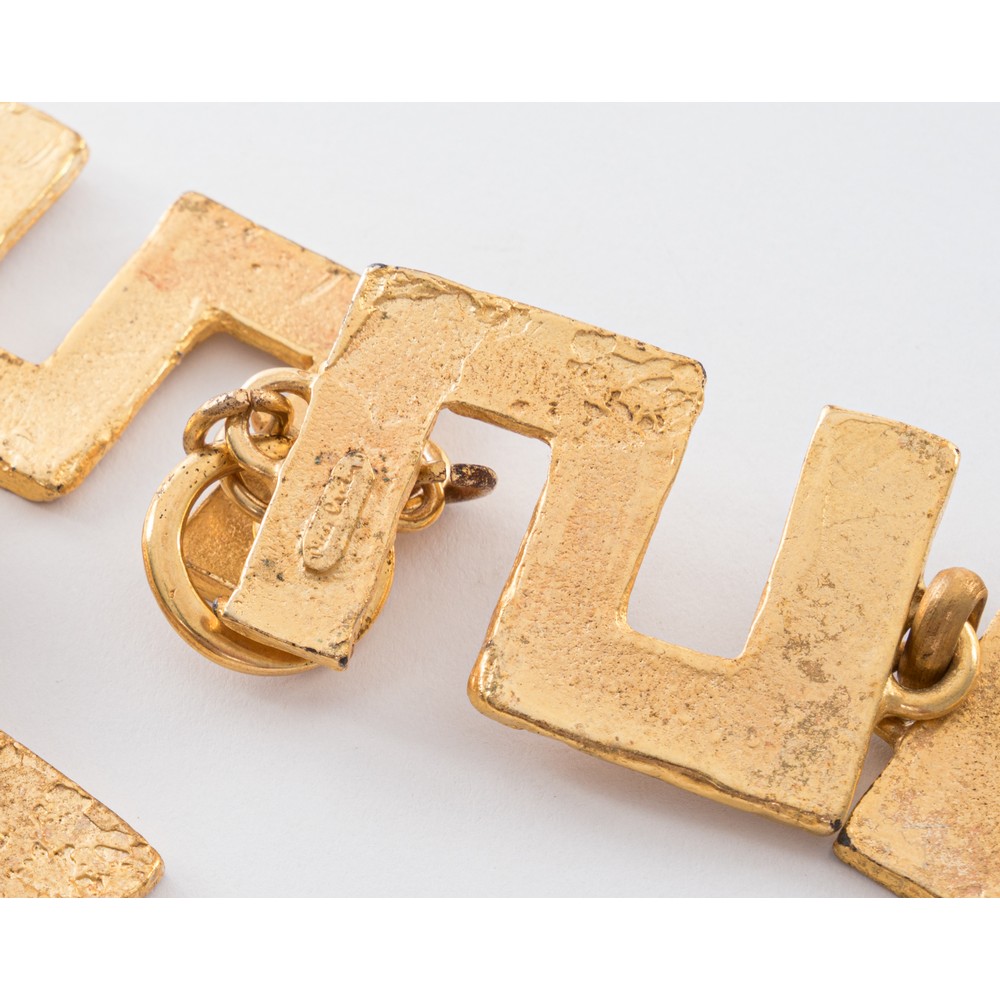 Collana Cardin vintage in metallo dorato e orecchini a forma di S a clip. Lunghezza orecchini cm 6,5.
