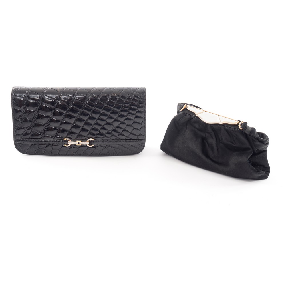 1) Borsa a mano in tessuto nero con chiusura gioiello in madreperla.