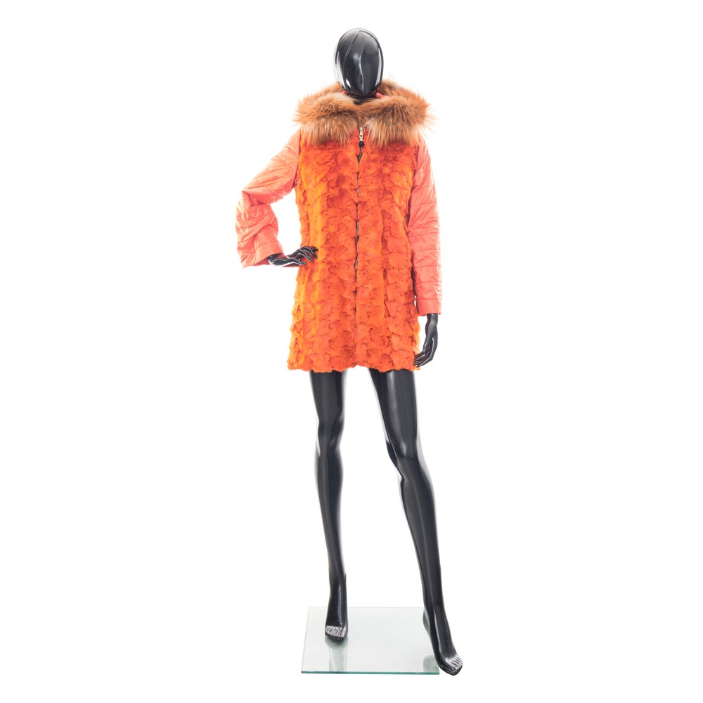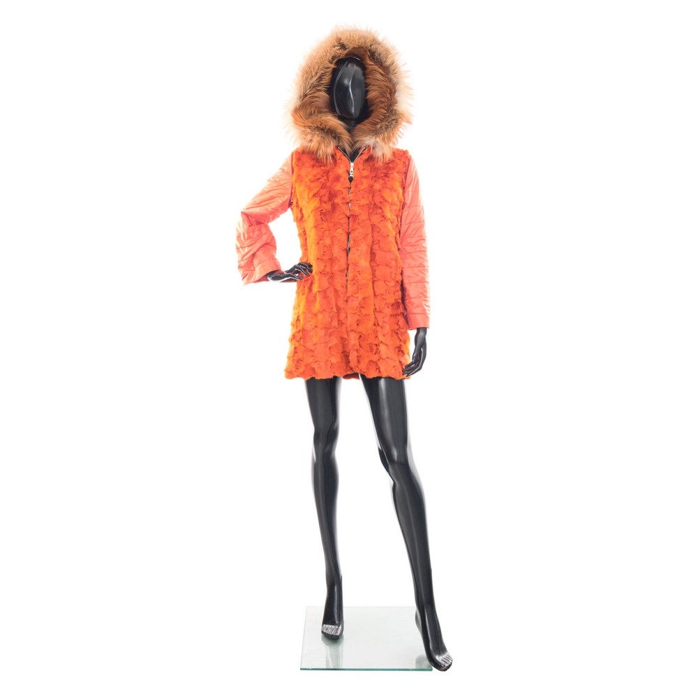 Cappotto in visone tiliki con cappuccio in volpe e maniche impermeabili staccabili.