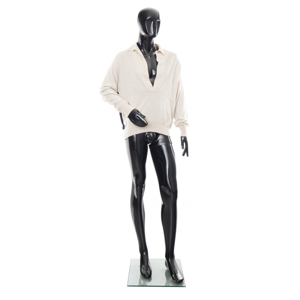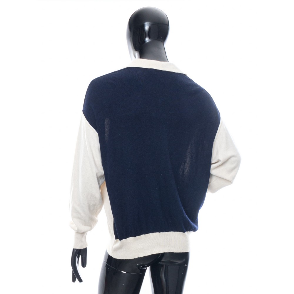 Maglia Ferrè in lana a scollo profondo colore panna e retro colore blu, taglia 50.