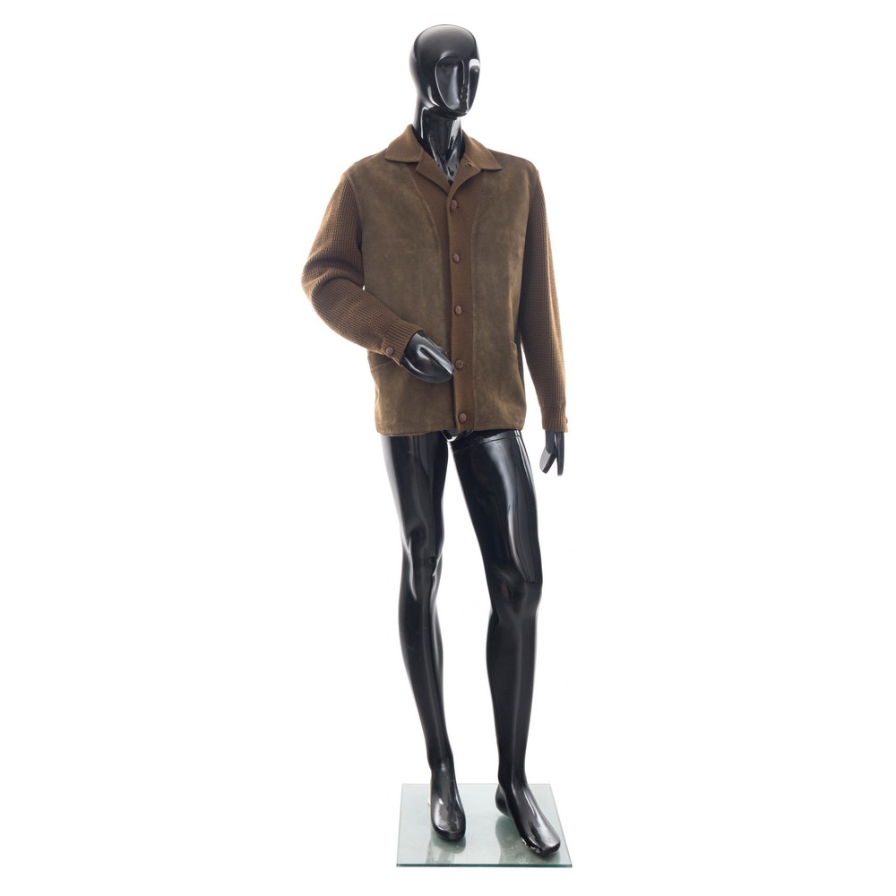 Giacca Belfe in camoscio con maniche e collo in maglia marrone bruciato.