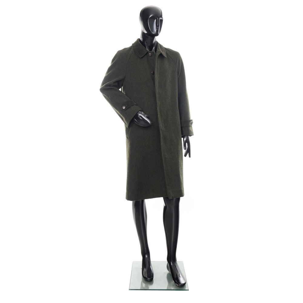 Cappotto in loden Ritz con collo in velluto rigato verde bosco, Taglia M/L.
