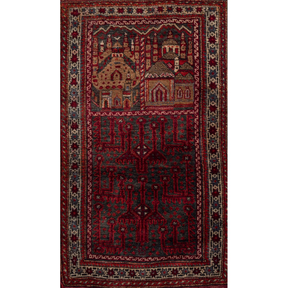 Tappeto Beluchi, trama, ordito e vello in lana. Pakistan XX secolo - Afghanistan XX secolo.