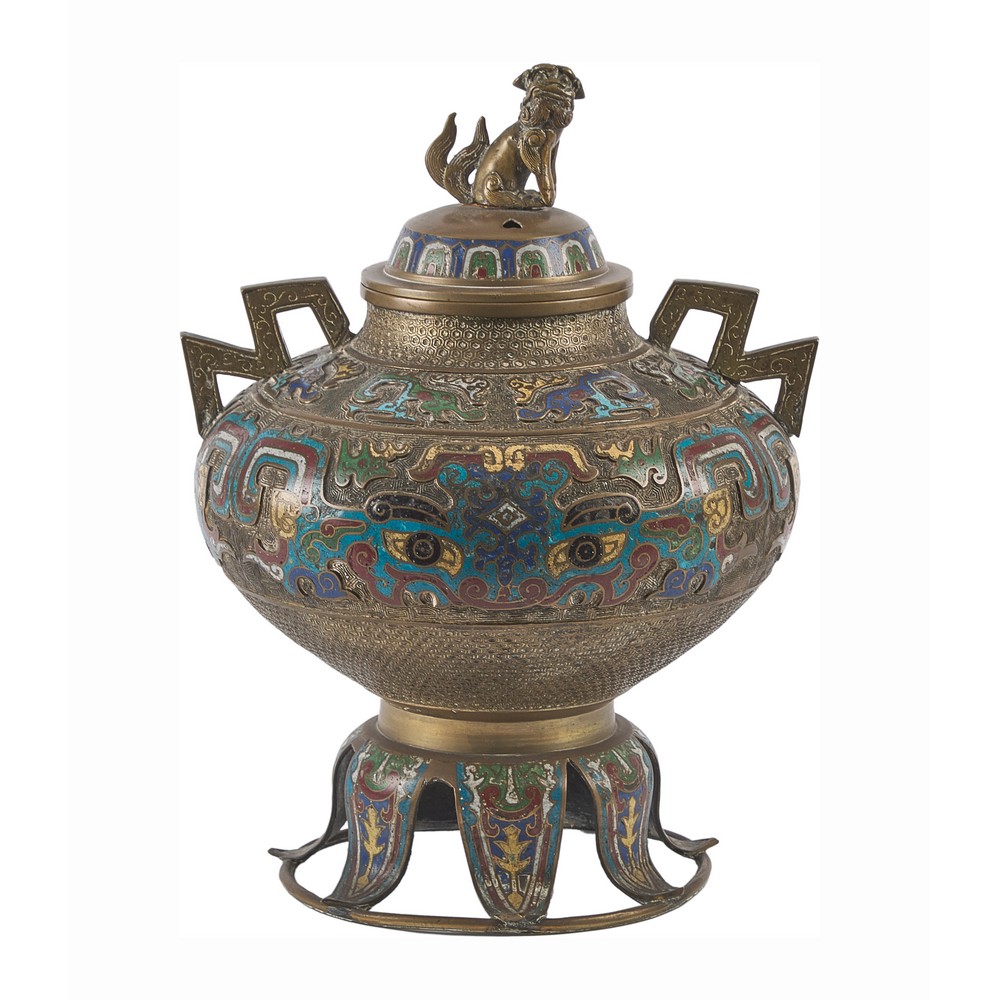 BRUCIAPROFUMO in bronzo e smalti. Cina XIX secolo.