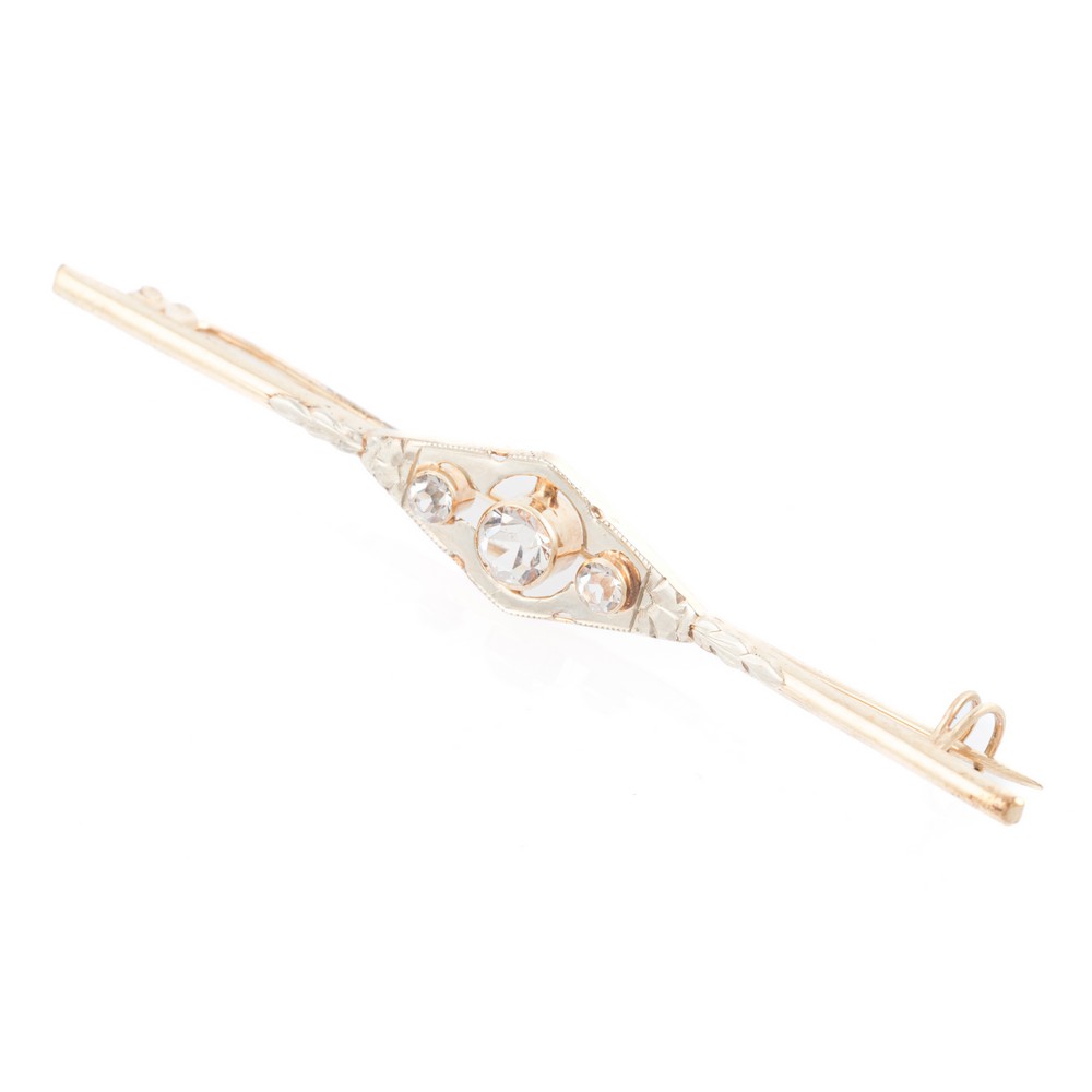 SPILLA in oro 9 KT e zaffiri bianchi (g. 2,40).
