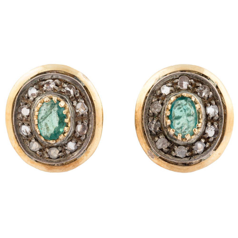 ORECCHINI in oro 12 KT e argento con diamanti e smeraldi.