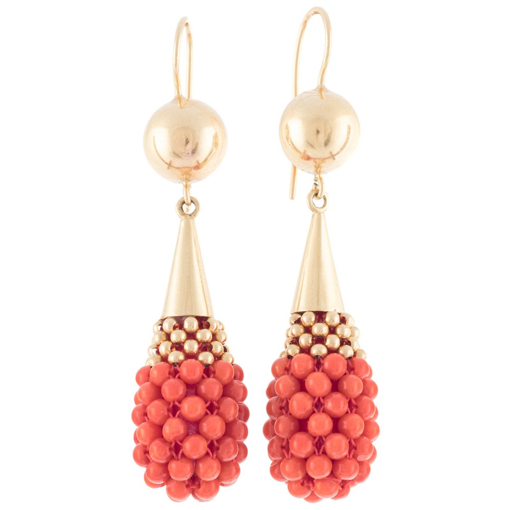 ORECCHINI in oro giallo 18 KT e corallo (g. 9,80).