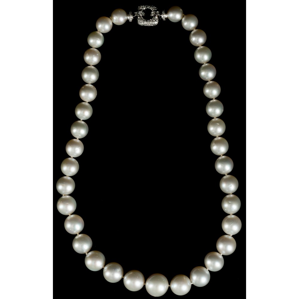 COLLANA di perle australiane ct. 550 peso di stima, susta in oro bianco 18 KT con diamanti taglio brillante ct. 1,90 peso di stima I color VS1.