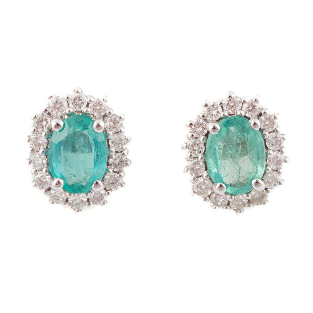 ORECCHINI in oro bianco 18 KT con smeraldi brasiliani ct. 1,20 peso di stima e diamanti taglio brillante ct. 0,80 peso di stima G color VS1 (g. 4).