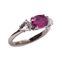 ANELLO in oro bianco 18 KT con diamanti gocce taglio antico ct. 0,65 e rubino ct. 1,15 peso di stima (g. oro 3,80).