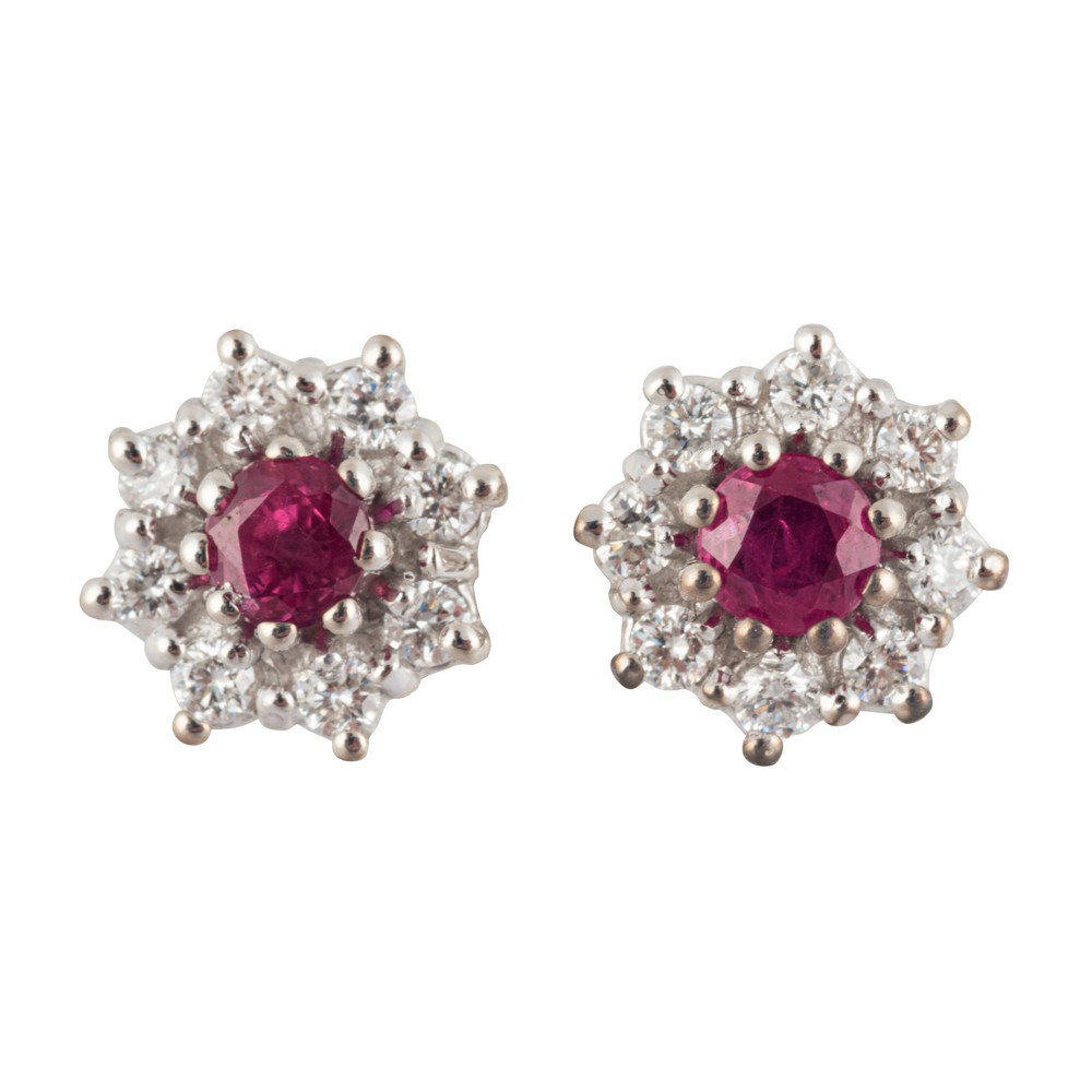 ORECCHINI in oro bianco 18 KT con brillanti e rubini