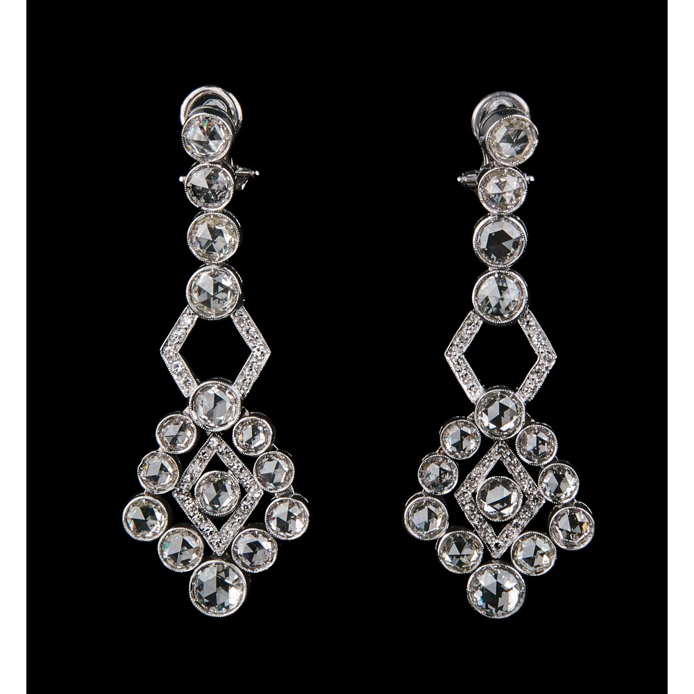 ORECCHINI pendenti in oro bianco 18 KT e rose coronè ct. 8,00 peso di stima (g. 22,10).