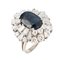 ANELLO in oro bianco 18 KT con zaffiro centrale australiano ct. 3,80 peso di stima, diamanti taglio teps ct. 1,04 e diamanti taglio brillante ct. 1,05 (g. 8,50).