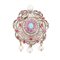 SPILLA/PENDENTE in oro 9 KT e argento con diamanti ct. 0,30, rubini ct. 1,00 peso di stima, perle e cabochon in turchese centrale.