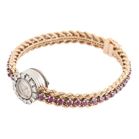 OROLOGIO da polso Serra Roma in oro giallo 18 KT con diamanti taglio vecchio ct. 0,40 e rubini ct. 0,90 peso di stima (g. 32,70).