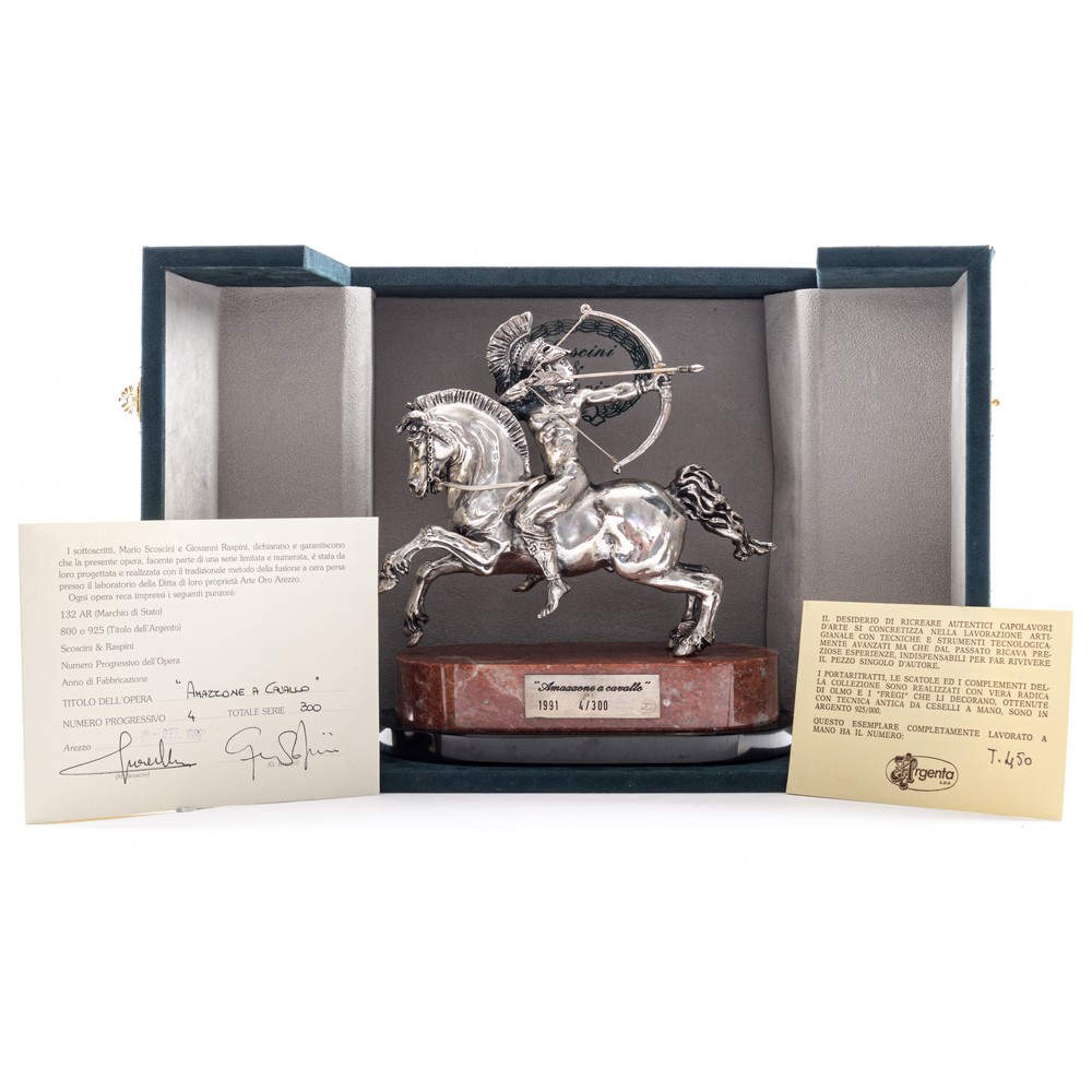 Scultura in argento raffigurante "Amazzone a cavallo" esmplare 4/300.