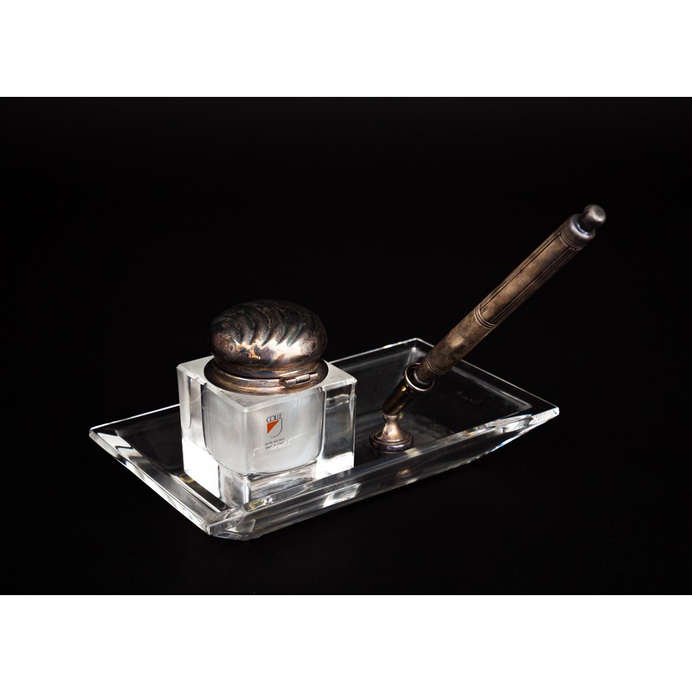 CALAMAIO in vetro e argento. XX secolo.