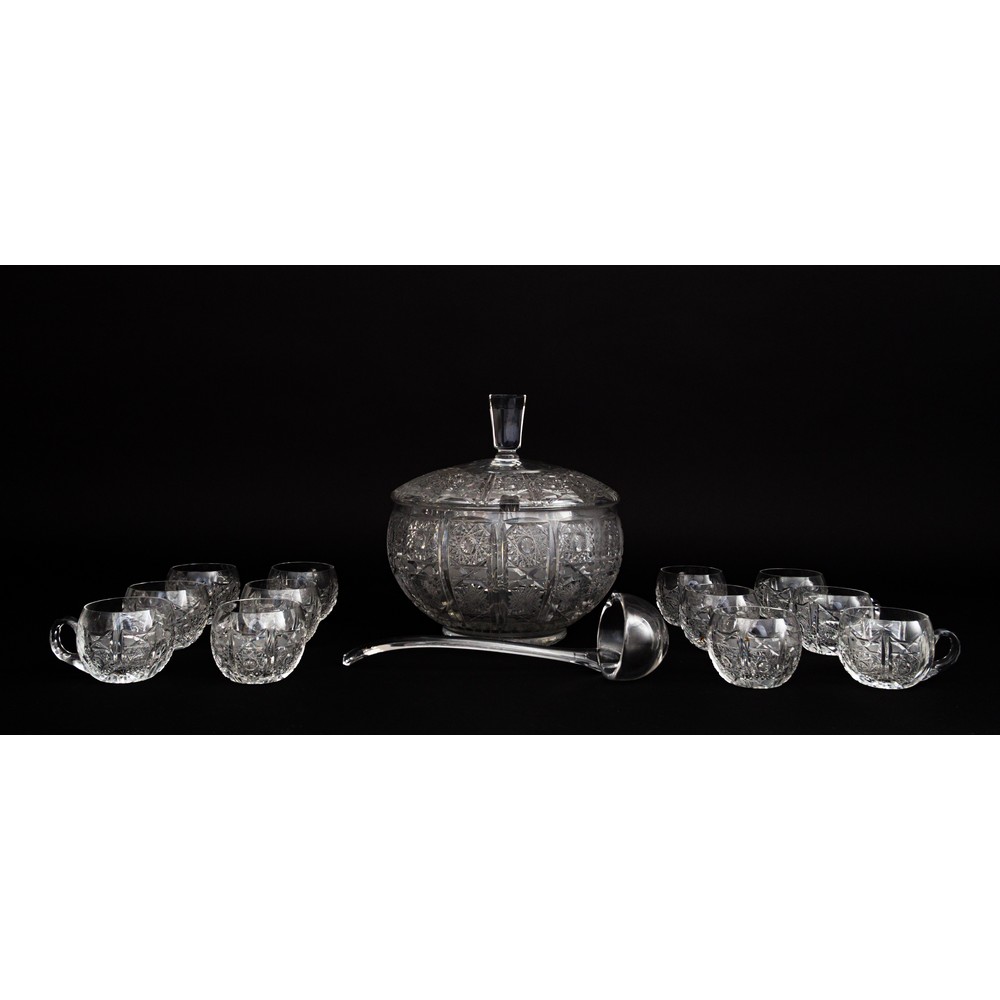 SERVIZIO DA PUNCH in cristallo lavorato composto da ponchera e 12 tazze. XX secolo.