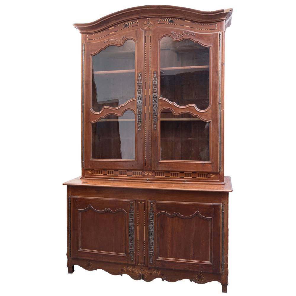 in legno di noce con tarsie in bosso a due ante nella parte sottostante e due ante a vetro nella parte superiore. Francia fine '700.