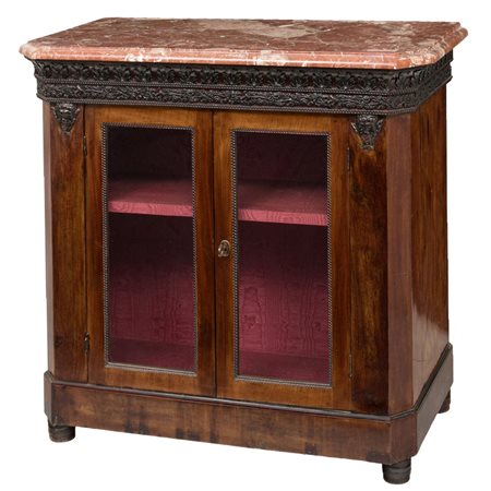 in legno di mogano e palissandro con piano in marmo rosa. Sicilia XIX secolo.
