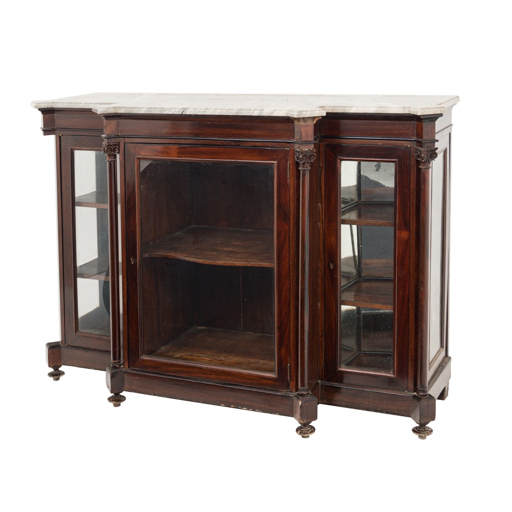 ETAGERE a tre ante a vetro in legno di palissandro, piano in marmo grigio. Sicilia seconda metà del XIX secolo.