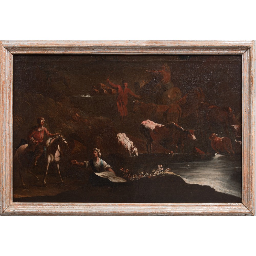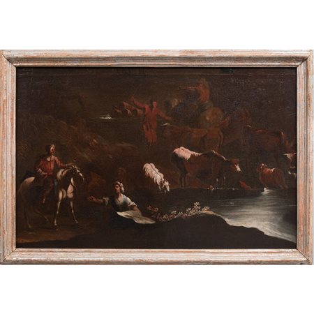 ROSA DA TIVOLI (Cerchia di), Paesaggio con personaggi