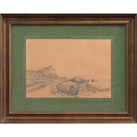 SALVATORE MORTILLARO, Paesaggio marino con barche