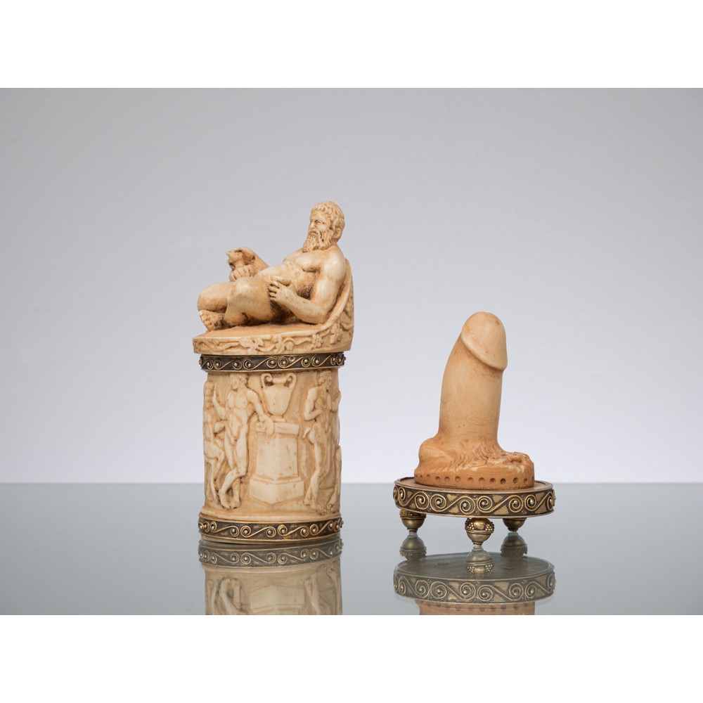 Sollevando la parte superiore dell'oggetto appare un fallo d'aubris, sapientemente nascosto all'interno.