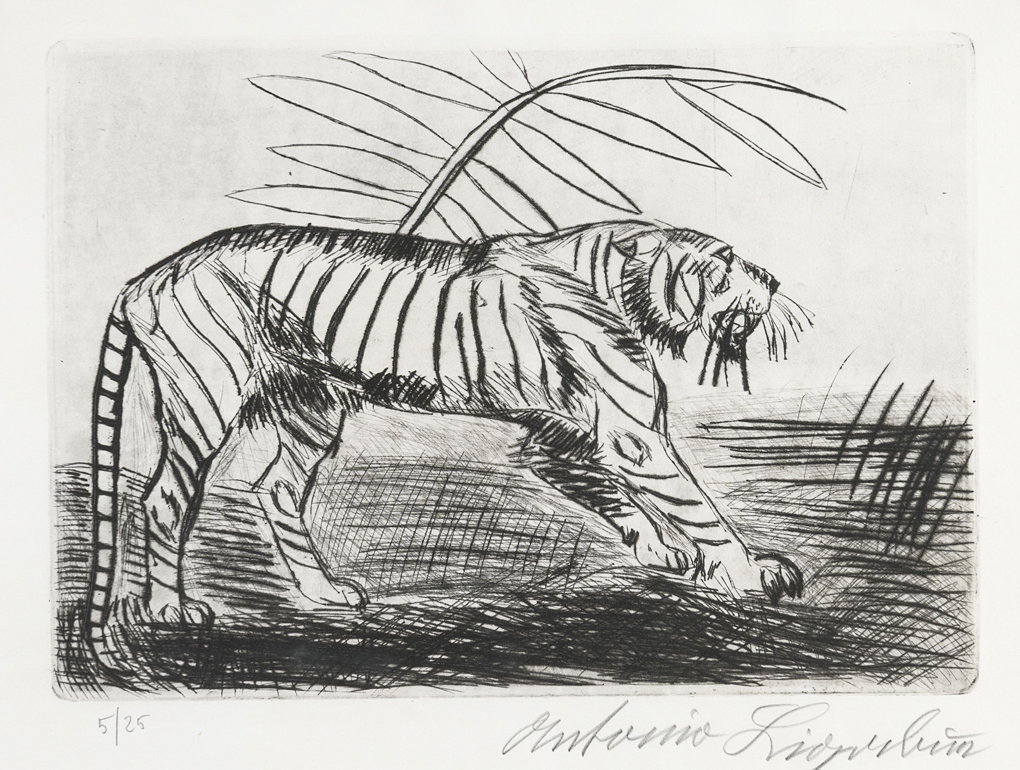 Ligabue, catalogo generale di Antonio Ligabue, Pitture, Sculture, Disegni e Incisioni, Augusto Agosta Tota, Parma 2020, ill. 63, inv. n. Inc41 (tigre) e ill. 64, inv. n. Inc43