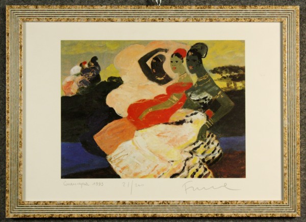 Firmato, datato. FIUME SALVATORE - Nato a Comiso (Ragusa) nel 1915. Morto a Milano nel 1997. Litografia su cartoncino raff. ''SOMALE''. Esemplare 21/200. Firmata e datata 1993. In cornice.