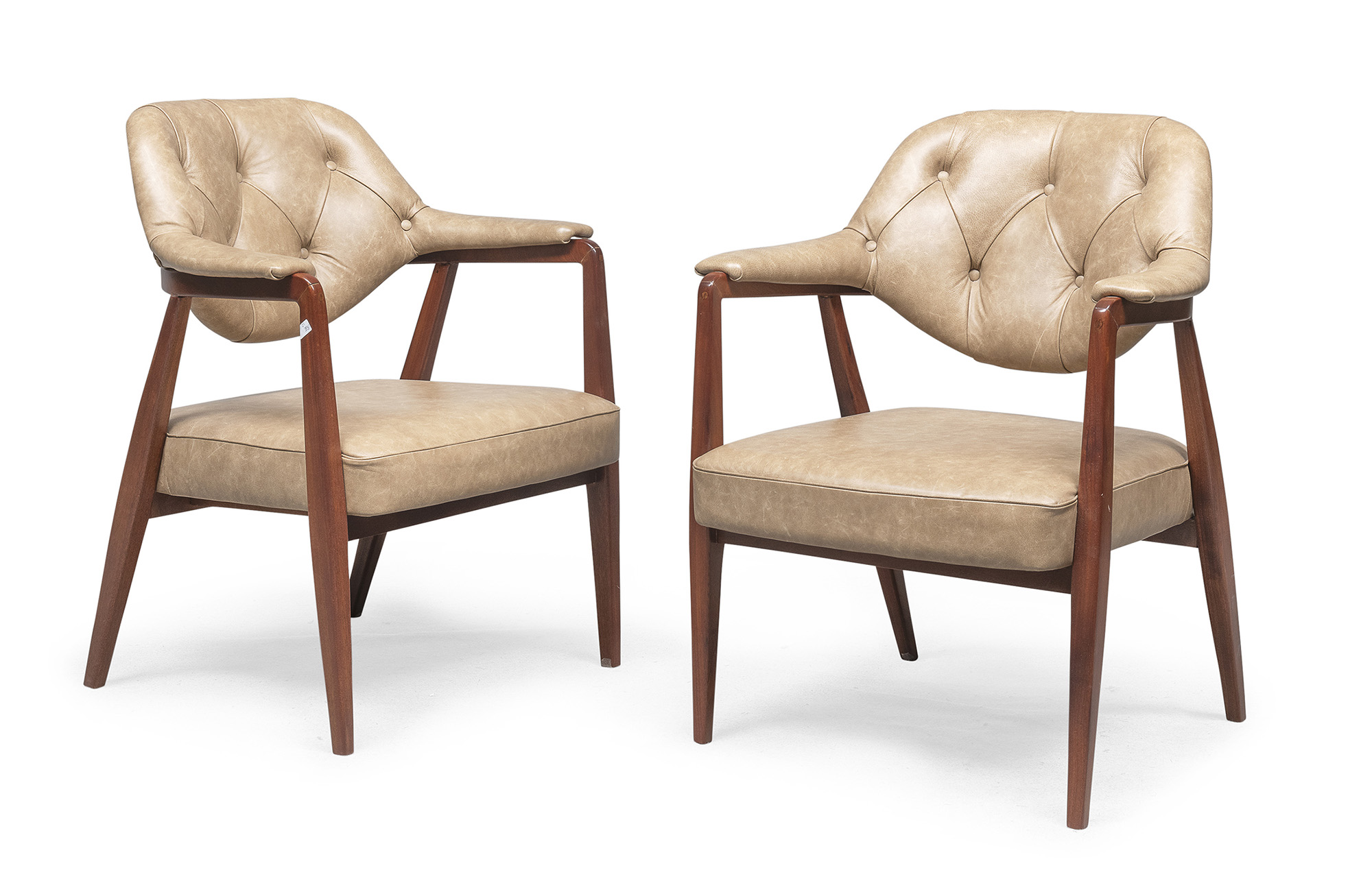 COPPIA DI POLTRONCINE IN PELLE CHIARA, FRAU ANNI '50