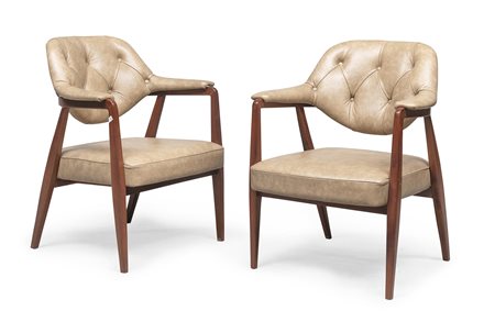 COPPIA DI POLTRONCINE IN PELLE, FRAU ANNI '50
