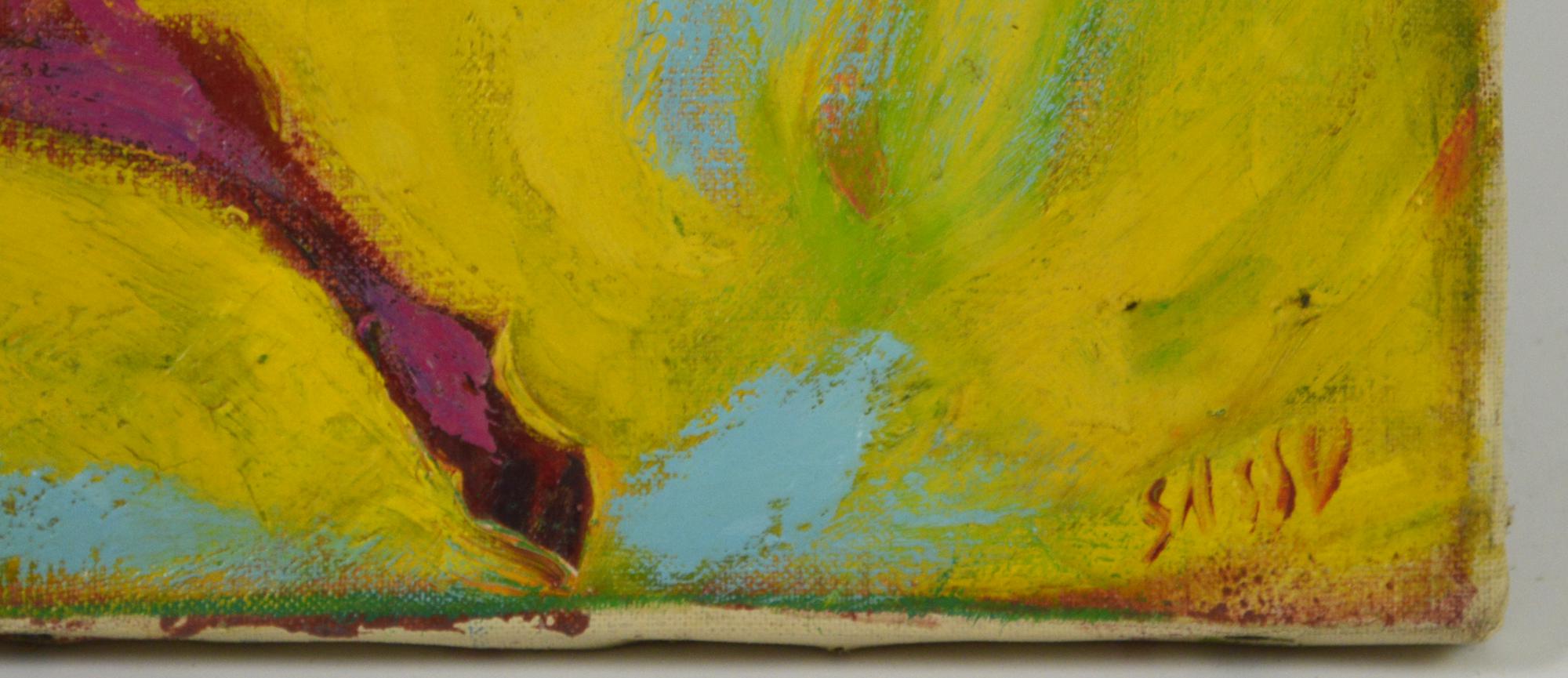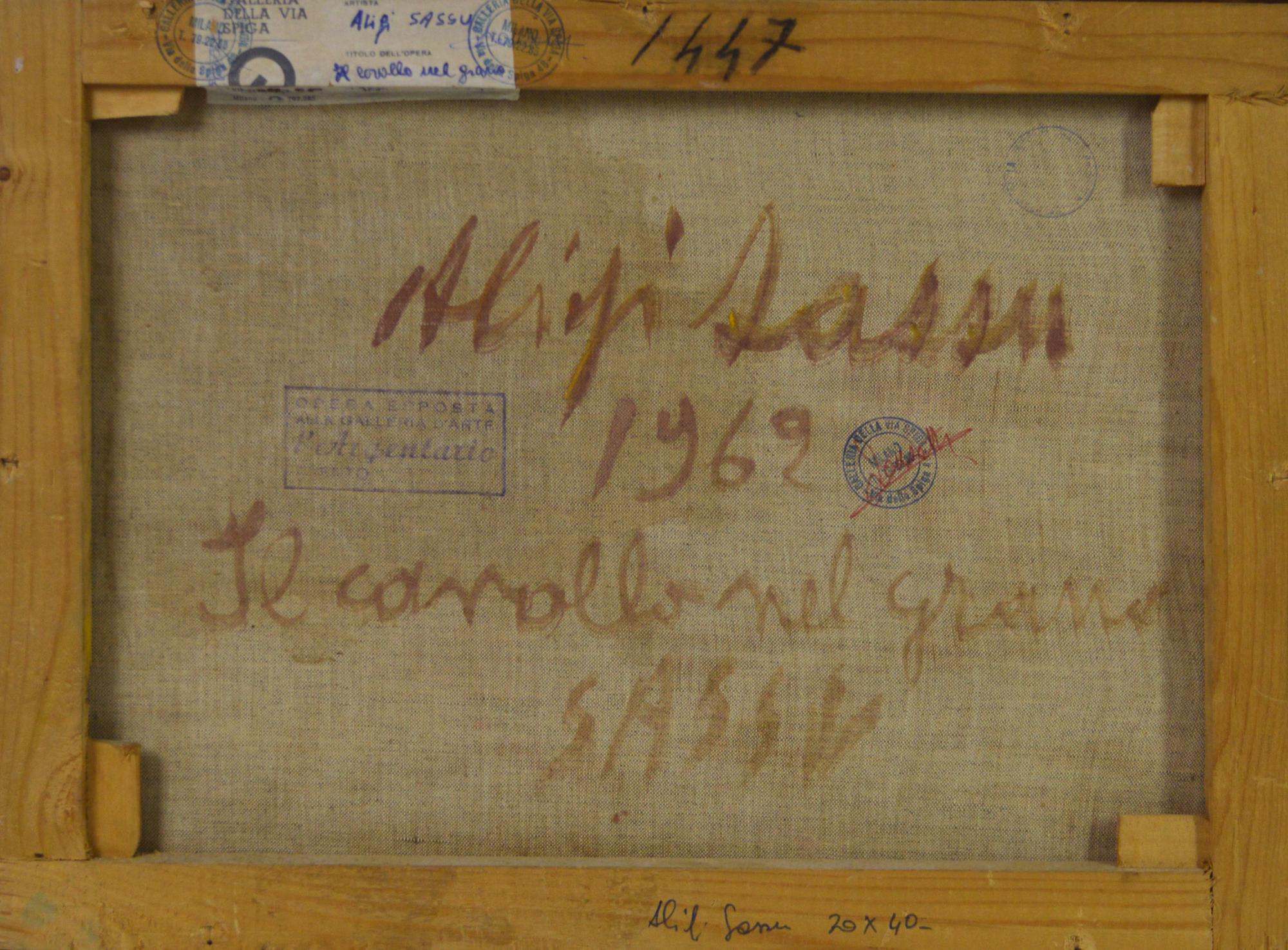 Aligi Sassu IL CAVALLO NEL GRANO olio su tela, cm 30x40 firma sul retro:...