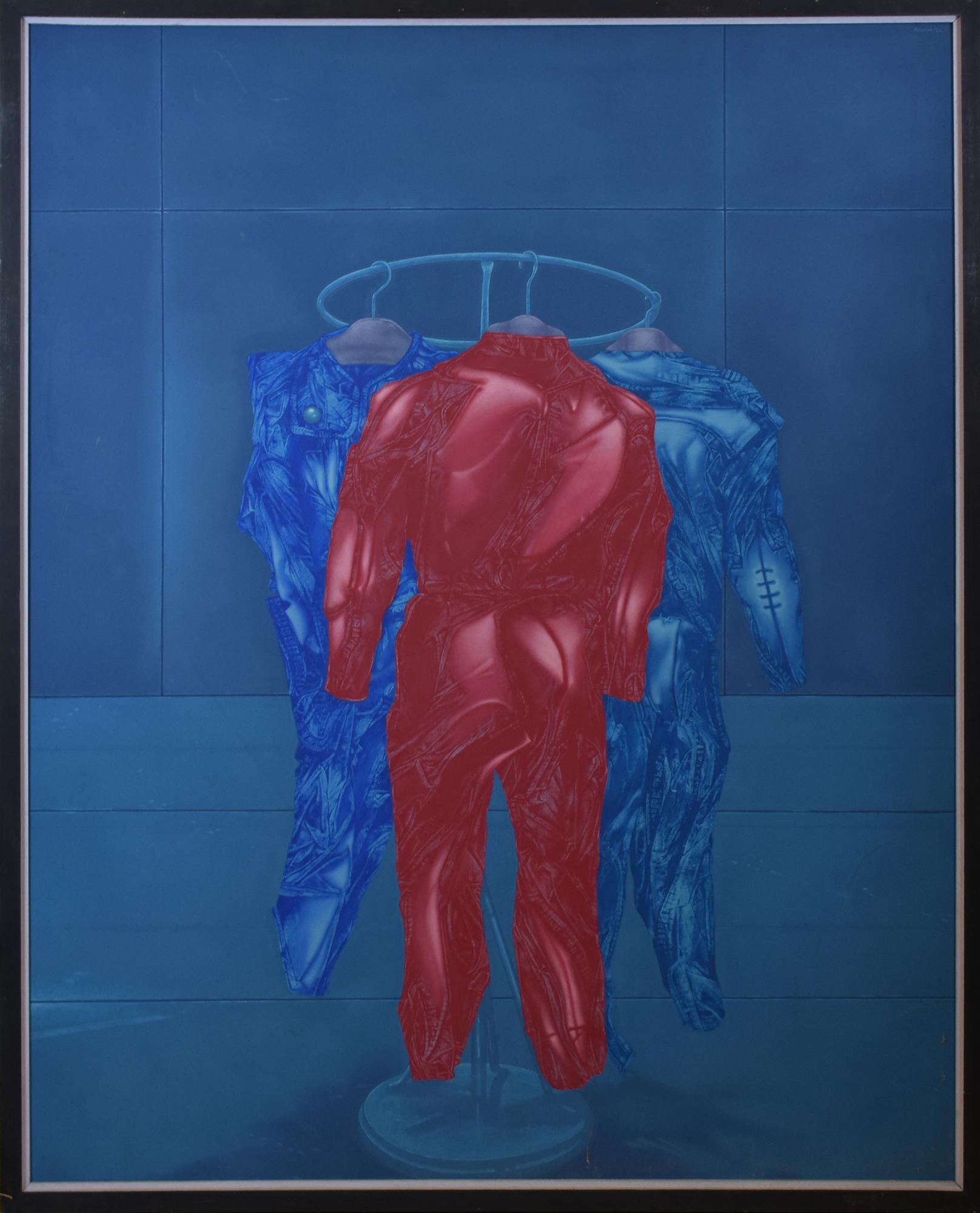 Marco Fidolini GUERRIERI IMPICCATI acrilico su tela, cm 144x114 sul retro:...