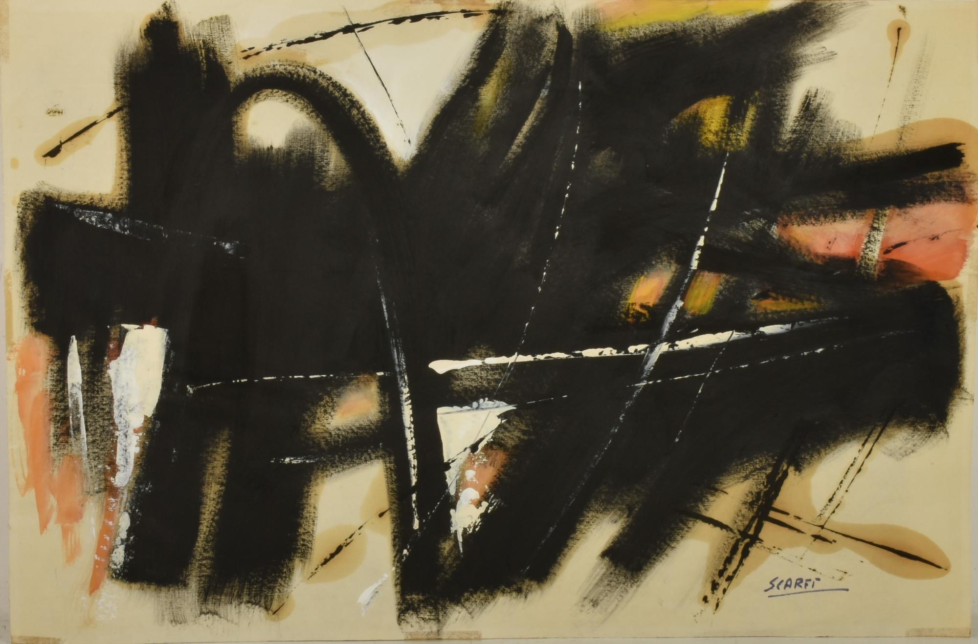 Lotto 72 | Attilio Scarfi SENZA TITOLO tecnica mista su carta 70x35 firma sul retro:...